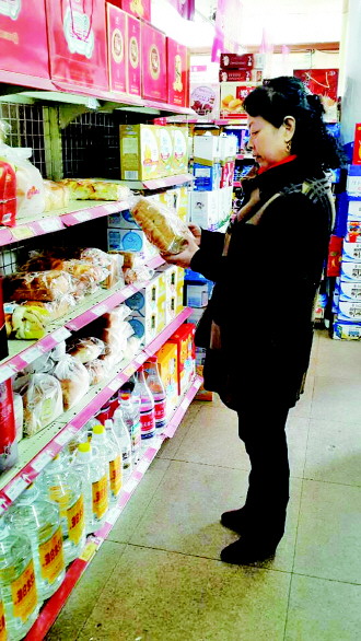 | 于桂香在超市查看商品有无质量问题。 |