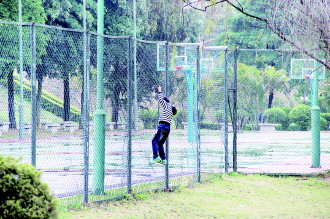 时间:2014年3月9日 自述:顽皮的男孩攀上了篮球场的铁丝网。 点评:看着有点悬。