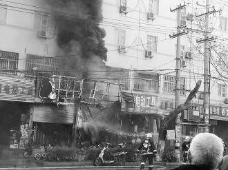 明火将店铺吞噬。 本报记者 甘倩茹 摄