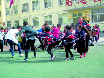 | 课间活动中,孩子们玩得兴高采烈。 本报记者 赵念东 摄 |