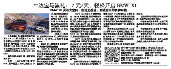 中达宝马崇礼:7元/天,轻松开启BMW X1 ——BMW X1灵活大空间、舒适全感受,实现生活的多种可能 日供低至7元,就能拥有豪华座驾BMW X1。即日起至3月31日,中达宝马4S店开启BMW X1金融惠享季,利率低至1.59%,让您全方位畅享100%自由!更多信息,请阁下关注微信公众号:中达宝马(bmw8_-)或致电中达宝马4S店:0537-274 8888。 购车攻略:BMW X1,拥有就这么简单! 攻略一:【360°金融方案】首付50%,利率低至1.59%,贷款12个月,每日最低还款仅为7元。贷款期末,您可以选择一次性付清50%弹性余款,也可以选择对其进行展期,继续享受中达宝马4S店金融专业服务。 攻略二:【低首付,低利率】238000元,宝马开回家!首付6.98万元,月供利率低至3.99%。 BMW X1:最宽敞最灵动的空间,构建移动的美食厨房 BMW X1拥有同级别最丰富灵活的功能设计,同级别最长的2760毫米轴距造就了足够宽敞的内部空间,为美食家提供了自由挥洒创造力的绝佳场所。在户外随性发挥,无尽的美食从移动厨房中制造出来,刺激着人们的味蕾。 BMW X1后排3个座椅可以40:20:40单独折叠,使行李箱容积从420升猛增到最大1,350升,这足以让您轻松布置一个移动的美食厨房。还有,BMW X1是同级别中唯一提供防爆轮胎而不需要备胎的车型,所以行李箱地板可以储存食材或特殊物品而不必担心遗洒。 BMW X1:纯粹驾驶乐趣与高效动力,您生活的理想伙伴 BMW X1拥有同级别最出色的驾驶乐趣、最强悍而高效的动力输出。BMW X1继承了宝马出类拔萃的运动基因,转向精准迅速,车身平稳,动力响应积极平顺。最佳的50:50前后轴负荷分配、精心调校的底盘、高刚性车身等因素都是出色操控的基础,为其实现了运动和舒适的最佳平衡。 在快节奏的都市中,敏捷动感的BMW X1是高品质生活的保证。它搭载BMW N20发动机与8速手自一体变速箱,构成同级别最出色的动力组合。这款2.0升双涡管单涡轮增压发动机可实现瞬间起爆强劲动力,让崇尚运动的车主每一次出发都充满激情。 在环保成为时尚的今天,BMW X1秉承BMW高效动力理念,将发动机节能自动启停系统、制动能量回收系统和ECO PRO模式作为它的标准配置,进一步降低油耗和排放,让动力和环保同时得兼。 选择中达宝马4S店BMW金融的好处: 自由选择并升级您所钟爱的车型,拓展可拥有车辆的范围; 把握家庭的资金积累,投资于其他的理财或保险组合,以获得更高回报; 节省现金支出,将资金用于商业运营并取得投资回报; 建立良好的个人信用纪录,助力未来的发展计划; 享有高端现场服务,由专人协助您完成贷款购车的每一个步骤。 济宁唯一BMW授权经销商:中达宝马4S店 地址:车站西路与西外环路(105国道)交界南行500米美恒汽博城1号 热线:0537-2748888 售后预约:0537-2748877 救援电话:0537-2748898 微博:@济宁中达任宝宝马4S店 宝马QQ群:253597578 关注微信公众:中达宝马(关注微信号:bmw8_-)