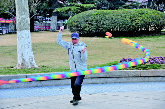 19日下午,市民郭先生在人民广场上演了空竹“秀”,引来不少市民围观。郭先生玩空竹已有两年多,希望能多结交一些爱好空竹的朋友,平时当锻炼身体,老有所乐。