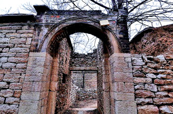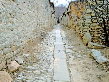 | 在方峪村,这样的石头大门随处可见。 |  | 村内的老井。 |  | 悠长的石板路别具韵味。 |