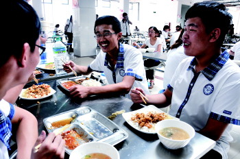 同学们品尝着丰盛的午餐。 本报记者 张晓科 摄