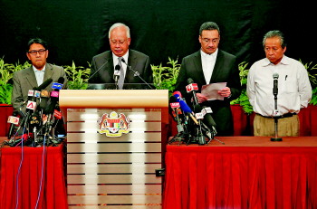 | ◤3月24日,马来西亚总理纳吉布(左二)出席新闻发布会。