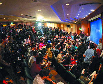 | 每次有失联飞机的消息,就会有大批记者前往。 新华社发 |