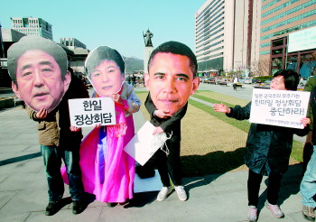 据日本共同社报道,美日两国力推的美日韩三国首脑会谈,在一波三折后最终确定在荷兰海牙召开的核安全峰会期间举行。这将是日本首相安倍晋三与韩国总统朴槿惠自上任以来首次正式会晤。虽然这场峰会将结束日韩两国去年来“互不搭理”的状态,但即便在会谈即将举行的当下,日韩两国暗中的较劲却仍在进行。 本报记者 王昱 美国: 这个“媒人”不好当 虽然此次美日韩三国首脑会谈表面上看不过是借海牙核峰会之机“搂草打兔子”。但由于日韩之前因慰安妇等问题长期冷战,美国促成此次会谈的过程可谓一波三折。24日,共同社详述了其中的来龙去脉。 据共同社报道称,本月1日朴槿惠在演讲中重申了“对近期举行日韩首脑会晤不感兴趣”的立场,这一表态引起了美国的担心。为了使奥巴马即将于4月进行的亚洲行能在协调美日韩三国的立场方面起到更好的效果,自本月上旬起,美国开始说服韩国借海牙核峰会之机与美日进行三方首脑会晤。 探听到美方这一举动后,日本立刻跟进,于12日派出副外相斋木昭隆赴韩专门接洽,不料此行却以斋木碰钉子提前回国。据日本媒体报道,安倍政府甚至一度要放弃这一努力。然而,由于安倍在14日和18日召开的日本国会上两次表态称“不打算修改河野谈话”,这让从中说和的美国找到了说服韩国的新借口,开始了对韩国新一轮施压。但直到20日,韩方依然以“需要时间等待日本实际行动”为由拒绝该提议。 但由于受到美国和国内的压力,韩方还是在21日松口,最终接受了美日韩三方首脑会谈的提议。在声明中韩方强调,与日美进行该会谈旨在“彻底解决历史问题,并协调对朝核问题的立场”。不过,虽然正式表态对该会谈抱有期待,韩国部分政府人士私下里依然为不得不屈就美日而失望,将之称为“外交战败”。 韩国: 怕被奥巴马“下套” 虽然朴槿惠在美国的强拉之下最终与安倍坐在了一起,但有道是“强扭的瓜不甜”,据日韩媒体分析,对于此次会谈目的,日韩两国可以说各有一本账。尤其是韩国,很担心会谈是美日联手设的一个局。 据共同社报道,韩国政府人士透露,韩方担心奥巴马会在三方会谈中借故离开,并留下一句“二位单独聊聊如何”,这将造成安倍与朴槿惠单独相处的“准双边会谈”局面,万一出现这种情况,朴槿惠所奉行的“先谈历史,再言峰会”的对日原则就将被打破。这是韩方决不愿看到的“最差的剧本”。 而对于朴槿惠可能疏远安倍的意图,韩国《中央日报》24日发表分析文章称,朴槿惠在3月25日举行韩美日三国首脑会谈前单独与中国国家主席习近平见面,显示出韩国政府想要同时维护与美国和中国关系的用意,希望实现韩美安保合作与韩中历史问题合作“两者兼得”的战略目标。该报称,站在韩国的立场上,最好的结果是既解决了韩日历史矛盾,又能够不与美中两国出现摩擦。 相比之下,日本媒体的分析则更为直接,共同社24日分析称,韩国此次肯参加三国峰会仅仅是因为不能拒绝美国的邀请,由于担心与日本亲近将造成中韩疏远,此次峰会上韩国一定会提防日本“趁机加塞”。