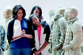 | 24日,美国第一夫人米歇尔和两个女儿在西安参观兵马俑。 |