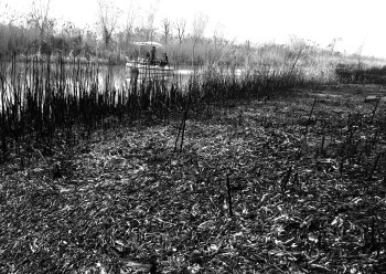 | 几位游客乘船驶过被引燃的芦苇荡。 本报记者 李岩松 摄 |  | 虽然工作人员经常清扫,但烟头和空烟盒仍随处可见。 本报记者 庄子帆 摄 |