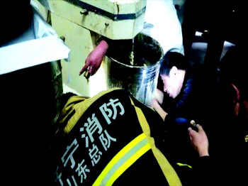 | 消防队员在拆卸和面机(视频截图) |