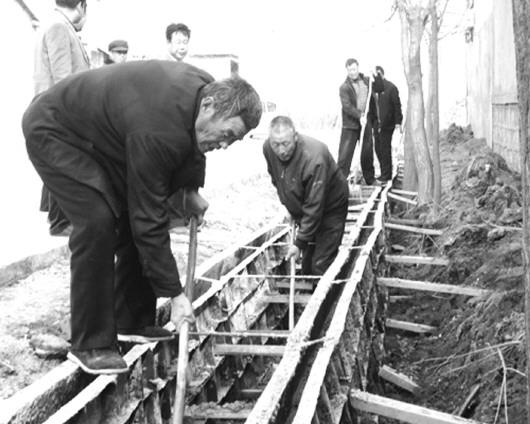 目前,棣丰街道办26个硬化村、9个净化村、8个美化村农村环境综合整治工作已全面启动,初步实现了“动手早、行动快、效果好”的阶段性目标。图为棣丰街道前丁村群众在村“两委”班子的带领下自发参与村内主街道的路边沟衬砌工作。