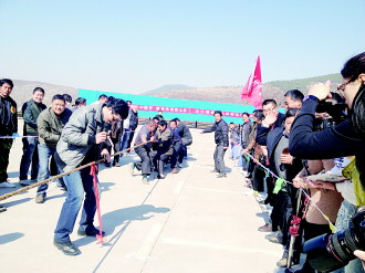 为活跃农村业余体育文化生活,21日,山亭区首届农民运动会在抱犊崮国家森林公园门前广场举行。独轮车推粮食、拔河、滚铁环、剥玉米、捡花生等项目一一上演。 本报通讯员 宋开伟 宋宗峰 本报记者 李婷婷 摄影报道