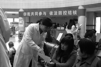 | 3月24日是世界结核病防治日,德州市人民医院开展“你我共同参与 依法防控结核”为主题的义诊活动,呼吸科内科医护人员为来院患者进行结核病知识讲解。 本报通讯员 郭吉显 摄 |