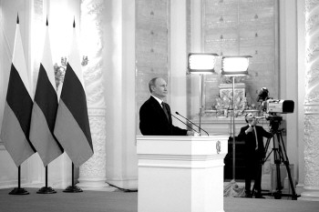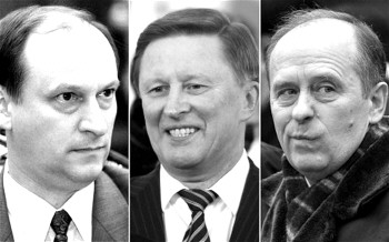 | 帕特鲁舍夫、伊万诺夫和博尔特尼科夫(从左至右) |  | 3月18日,普京就克里米亚问题发表演讲。 |