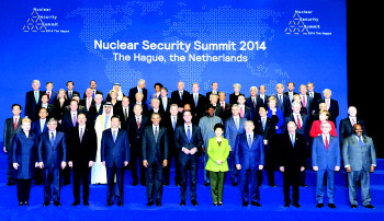 | 25日,出席海牙核安全峰会的各国领导人合影,其中少了核大国俄罗斯总统普京的身影。 新华社发 |  | 神秘的“核手提箱”。 |