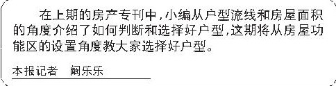 在上期的房产专刊中,小编从户型流线和房屋面积的角度介绍了如何判断和选择好户型,这期将从房屋功能区的设置角度教大家选择好户型。 本报记者 阚乐乐