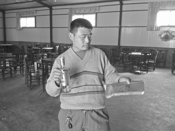 | ◥1日,二十里铺村民展示办红白事用的烟酒,酒是鲁南村,10元一瓶,烟也不贵。背后是供村民免费办红白事的厂房。 |  | 丧事或喜事结束后,红白理事会建立的工作台账。 |