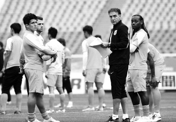 | ▲库卡和他的南美三叉戟。 本报记者 王鸿光 摄 |