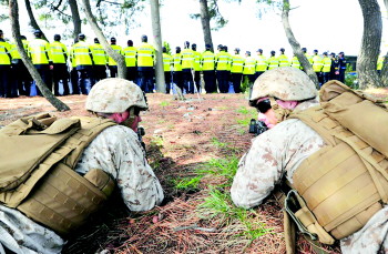 | 美韩联合登陆演习于3月31日在韩国浦项市进行,当地居民进行抗议示威,韩国警方包围演习地点阻止示威民众靠近。同日,美国白宫发言人卡尼重申美方对韩国的防务承诺。据国际在线 |