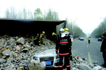 本报4月1日讯(记者 董传同 通讯员 王宏伟) “这个车牌号好熟悉,在哪里见过呢?”,武城交警小李一拍脑袋瓜,猛然记起这不是自己的车牌号嘛!如今却挂在了一辆黑色的奇瑞上,莫不是“愚人节”有人拿自己开玩笑? 4月1日,武城交警大队城区一中队民警在城区北方街巡逻,民警小李看见一辆黑色奇瑞轿车车牌号很熟悉,这不是自己的车牌号吗?立即察觉此事有蹊跷,于是紧跟此车,在县医院路口把此车拦截。 停车后民警上前一看,原来车主将一个“8”贴在了自己车牌的尾号上,号牌就由原来的“GXX55”变成了现在的“GXX58”,与民警的车牌号一“号”不差。被民警当场指出违法行为,车主只得低头承认违法事实,哭笑不得说了句:“真是撞枪口上了。” 根据《中华人民共和国道路交通安全法》第16条第3款和第96条第1款规定,故意使用伪造、变造的机动车号牌,依法给予罚款2000元,扣12分以及拘留15日以下的处罚。 目前,车主正在交警大队接受处理。 倒来横祸 3月28日17时许,在308国道齐河高速东,一辆满载石子的重型翻斗车发生侧翻,恰巧将一辆奥迪轿车压住,石子撒落一地,车内有人员被困。 本报记者 孙婷婷 通讯员 杜长青 摄影报道