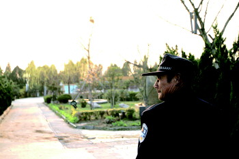 |  | 夕阳下老牟行走在墓园内,白天的巡逻任务即将完成。