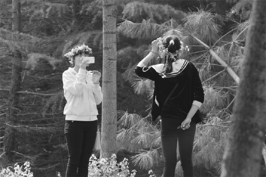 3月30日,两位女孩用二月兰做成花环戴在头上拍照。近日温度持续升高,市区大部分观赏性花卉也都开放,踏青赏花的游人增多。赏花同时一些不良行为也展现出来。在新滨公园、新立河畔一些草坪上,许多游人攀折草木,做成花环以供拍照。