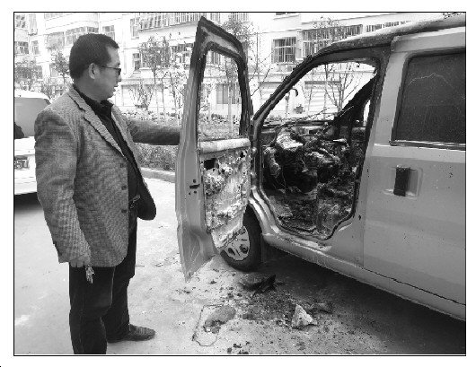 看到烧焦的面包车,程先生一脸愁容。 记者 程凌润 摄