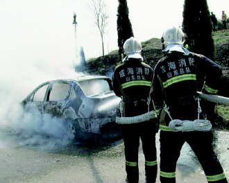 1日9时许,文登张家产镇上埠前村附近,一辆标致轿车自燃,引燃绿化带,大火被赶到的文登消防开发区中队扑灭。当天15时许,文登文山路一医院门口,一辆农用三轮车起火,开发区中队再次前往灭火,但驾驶室仍被烧毁。