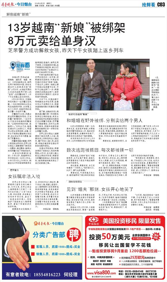 13岁越南“新娘”被绑架8万元卖给单身汉