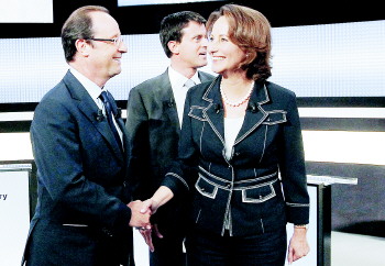 | ◥2011年,奥朗德与罗雅尔在一次活动中握手。东方IC供图 |