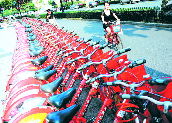 | 公共自行车租赁系统成为城市街头的风景线。 (资料片) |