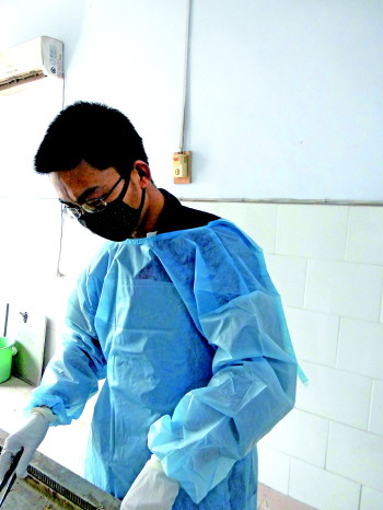 | 正在给逝者整容的李磊。 实习生 张健 摄 |