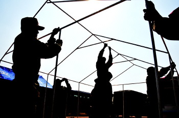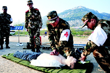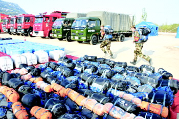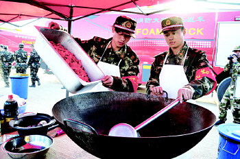 3日下午,邹城市峄山脚下,练兵场上战旗飘扬。山东省公安消防总队组织的山林火灾跨区域战勤保障拉动演练在此启动。 此次演练假设山林发生火灾,全省调集部分地市消防支队进行救援,由于长时间作战,现场泡沫液、车辆用油、空气呼吸器供气不足,急需后勤保障。 13时30分,5个支队迅速集结完毕。38辆消防战勤保障战车准确抵达指定的战斗区域。 到达现场后,消防战士从保障车车厢内取出保障器材,分类摆放风力灭火器材、应急救援装备。“包里是24样装备,有保暖内衣、救援应急灯、指南针等物品,可以保障一线战斗员的各种短期供给。”一名消防战士介绍。 炊事班则在空旷场地搭建厨房,枣庄支队拉来了炊事车,拆卸后便可生火做饭。案板前,炊事员动作利索,洗菜切菜,入锅翻炒,少顷热腾腾的饭菜便分装入盒。 “检查伤员口腔,心肺复苏准备,动作要快!”在医疗急救区域,军医正给从火场一线撤下的“伤员”检诊,主治军医做现场急救后,立刻将其用救护车转送后方医院治疗。考虑到山林火灾战斗时间长,消防战士还着手搭建帐篷,并放置睡袋供灭火队员休息。 此次演练,共调集济宁、菏泽等5个支队的38部战勤保障车辆,近300余名官兵参加演习。在演练现场,还设置了空气呼吸器气瓶充装、装备抢修、灭火剂供给等演练项目。