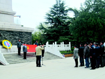 | 前来祭拜先烈的团体在举行宣誓仪式。 |
