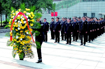 1日,菏泽市公安局组织党员民警,到沂蒙革命老区的孟良崮战役纪念馆和红嫂红色教育基地,祭奠革命先烈,开展理想信念、党性党风红色教育。