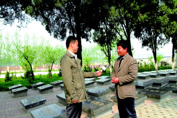 本报菏泽4月3日讯(记者 王保珠 通讯员 吉文选) “昨天下午,央视驻济南军区记者与我联系,要专门对寻找无名烈士进行采访。”3日,菏泽开发区佃户屯办事处张和庄社区党支部书记、老兵张景宪说,他也想借此能帮助更多烈士联系到家人。 3日上午,在张和庄烈士陵园,张景宪正在接受采访。此外还有牡丹区党史办原主任祝厚江、农发银行菏泽分行原副行长刘浩然以及张和庄社区原村长王书义,他们作为张景宪寻找无名烈士线索的重要提供者和见证者,分别接受了采访。 “走到这一步,非常感谢齐鲁晚报和各界热心人士对我的帮助。”张景宪说,2008年伊始,他就开始着手为无名烈士寻家,可当时面对这一个个土丘,却没有人能知道长眠于此的先烈为何人、他们参加哪场战斗牺牲在这片土地上的……太多的谜团在他心里打转,作为一名越南自卫反击战的退伍老兵,他曾亲眼目睹过战友牺牲,面对这一切让他感到一种责任,“我不想留下任何遗憾,我尽力了,哪怕一个无名烈士家人没有找到,我才能心安。”