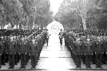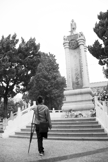 | 3日上午,驻日照某部官兵向革命烈士纪念碑敬献花圈。 本报记者 刘涛 摄 |  | 3日,一位残障人士在革命烈士纪念碑前缅怀烈士。 |