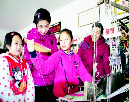 近日,车王镇中学的学生们利用课余时间来到车王镇邢王孟家孟德亮的梦依美粗布有限公司,跟70岁的民间老艺人李淑荣学习织布手艺。通过实地学习操作,学生们零距离感受到了民俗艺术、民间文化的独特魅力。