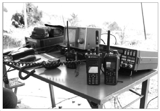 莱芜无线电协会会员进行无线电演练。 无线电设备