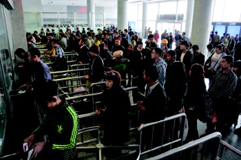 4月3日上午,淄博火车站售票大厅内,旅客排起了长队。据了解,清明节将出现春节高峰后的第一个出行小高峰,济南、青岛等方向出行人数较多,旅客主要以探亲、旅游为主。 本报记者 王鸿哲 摄影报道