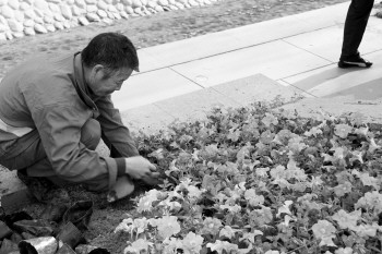 | 园林工作人员种植鲜花,美化城区环境。 本报通讯员 李楠 摄 |