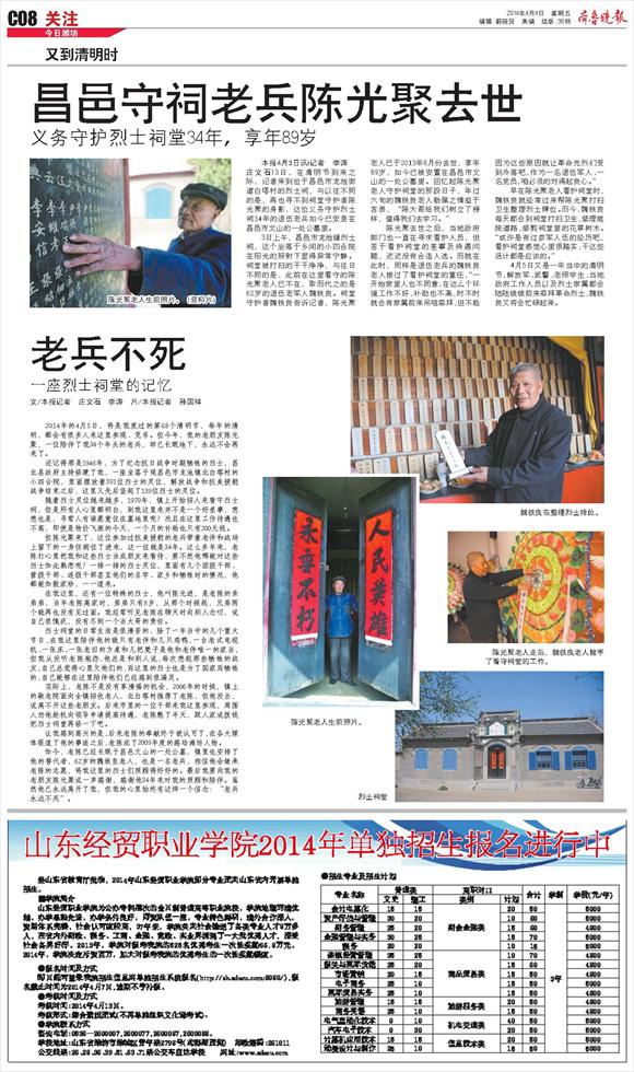 昌邑守祠老兵陈光聚去世