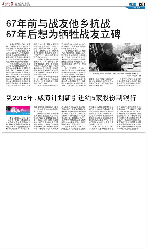 67年前与战友他乡抗战67年后想为牺牲战友立碑