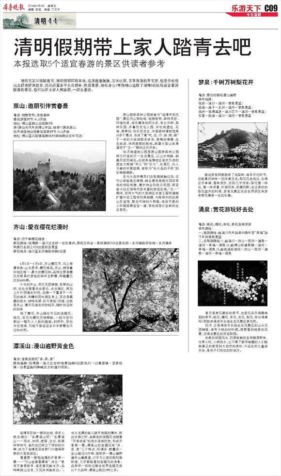 本报选取5个适宜春游的景区供读者参考
