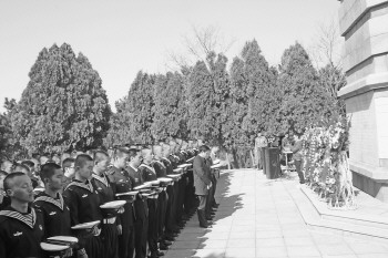 今年恰逢甲午战争120周年,4日9时,威海市民、刘公岛管委会、驻威91329部队、91352部队官兵和山东大学威海分校学生共计500余人,在刘公岛景区北洋海军忠魂碑祭奠甲午战争英魂。