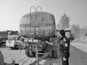 10吨废酸液灌进坑塘,现场酸味刺鼻 “有人往池塘里排污水!”3月19日傍晚6点左右,天刚擦黑,聊城临清市环保局接到了群众举报电话。20多分钟后,当地环保局与公安局组成的联合巡查大队赶到了位于临清市东郊的裕民渠南岸农场一处废弃鱼塘,当场抓获一辆正在偷排废液的河北牌照罐车,以及三名偷排人员。 “他们接了两根很长的软塑料管,同时往坑塘里排。塑料管破损的地方有黄绿色的液体流出来,地上立刻就被腐蚀得起了一层沫。”临清市环保局执法二大队大队长赵卫峰向记者回忆当晚现场的情形:“整个现场弥漫着一股刺鼻的酸味。”经现场盘查和笔录询问,这辆罐车来自河北邯郸,三名人员分别是一名押运员、一名司机,以及一名负责踩点的临清籍男子。废液是制钢管的酸洗环节产生的废酸液,经工作人员现场用PH试纸初步检测,废液PH值小于1,为强酸。 经调查,罐车内大概装了36吨废液,已向坑塘内排放了10吨左右。事发当晚,联合巡查大队工作人员对废酸液和坑塘内的水取样后,立即密封了罐车排水口,将车辆就近扣留,并将三名人员送遣至公安局进行调查。同时启动环境应急预案,购买了6吨左右的纯碱撒入坑塘内以平衡酸碱度。