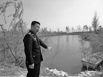 | ◥偷排罐车是专门用来装载腐蚀性液体的。 |  | 被污染的坑塘水颜色至今发红。 |