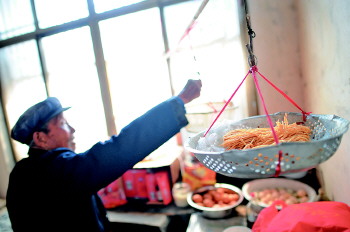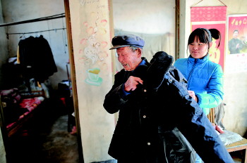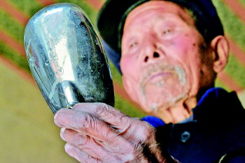文/片 本报记者 陈文进 百岁老人陈绪功出生在济宁微山县微山岛上,如今,老人依旧身体倍儿棒,平日除了烧火做饭,还能干些农活。 陈绪功没上过学,前半辈子以打鱼和打工为生,年轻时给村里富人家当过几年长工和短工,那时不给工钱,都是拿粮食顶,当长工则要干上一年。年过半百后,贩了几年鱼,老年则以种地为主。 60年前,微山湖里野鸭成群,陈绪功在湖里下鸭网逮过野鸭,顶着烈日采过荷叶,还经常在湖里下网捕鱼。一次,他带着10岁的儿子在湖里捕鱼时赶上了大风天气,船差点被吹翻,幸亏离岸较近,陈绪功来不及收网赶忙将船推到岸边才脱了险。 50岁以后,陈绪功从事起贩鱼的营生,在湖边买了渔民打的鱼后再卖到江苏,他忠厚实在,贩了7年的鱼从没主动给别人算过账,多少钱都让对方看着给。正是因为为人诚实,上世纪50年代,他被村民推举当了5年的村主任,后来自己请辞。 陈绪功一生在湖区生活,如今,每个月能领到100多元的补贴,这让他很知足。老人一生勤俭,现在用的镜子是在外面捡到的摩托车后视镜,家里挂篮子用的挂钩是用树杈做的,既环保又实用。 陈绪功目前跟儿子生活在一起,平时在家闲不住,每天早上起床后围着村子走一圈,活动活动筋骨。天热的时候,就在树阴下跟老街坊打打纸牌。周围几个村里,数他年龄最大。老人一生不吸烟、不喝酒,平日吃的是粗茶淡饭,稀饭、馒头、煎饼啥都行。更让人羡慕的是,老人牙口好,至今还是满口的好牙,平时也能吃硬一些的食物。 陈绪功80多岁时,时常挑水浇地,去年还去地里用镰刀割过麦子。