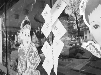 | 东莞厚街镇康乐街上一座大型超市三楼的一个小摊位,贴着“招租”的广告。扫黄后,这里的生意一落千丈。 |  | 4月2日,东莞厚街镇体育路上,一家酒店门上依然贴着封条,至于何时解封无人知晓。