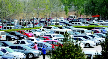 | 6日,济南东郊的植物园门口,停车一位难求,停车场满了,车辆延伸到附近的道路上。 本报记者 周青先 摄 |